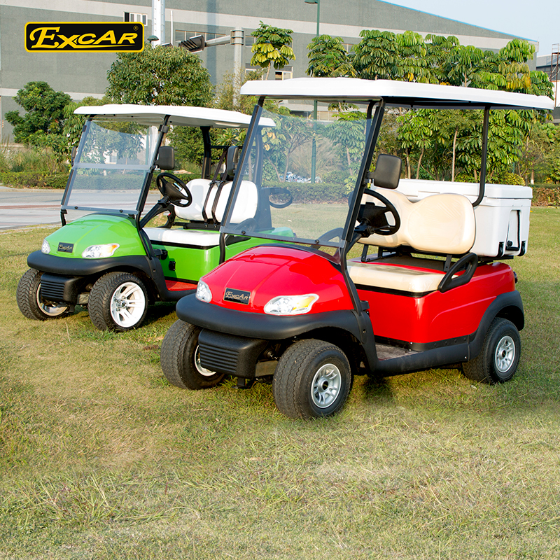 EXCAR red 48V Trojan battery 2 seater electric golf car with small ice box golf buggy